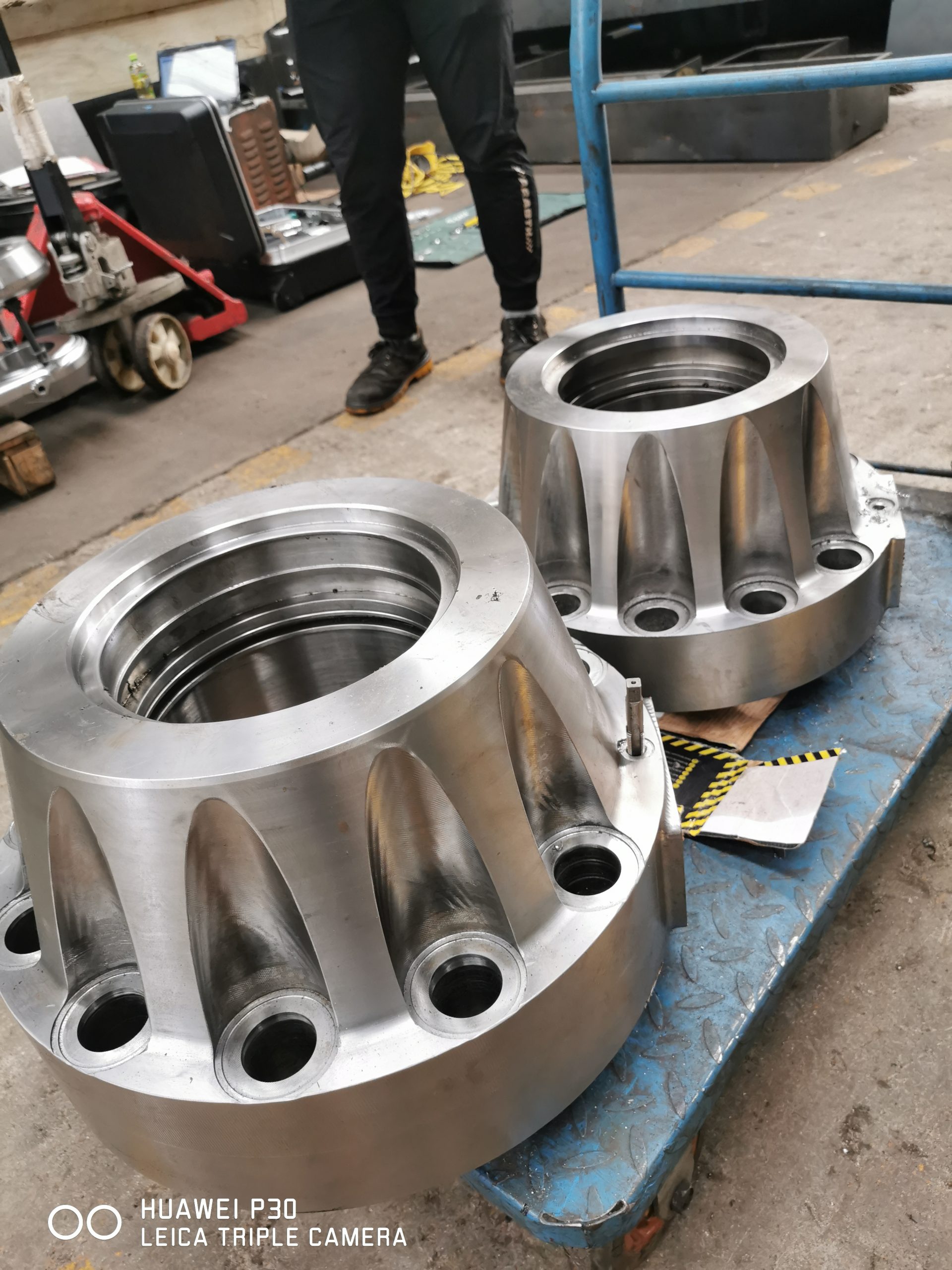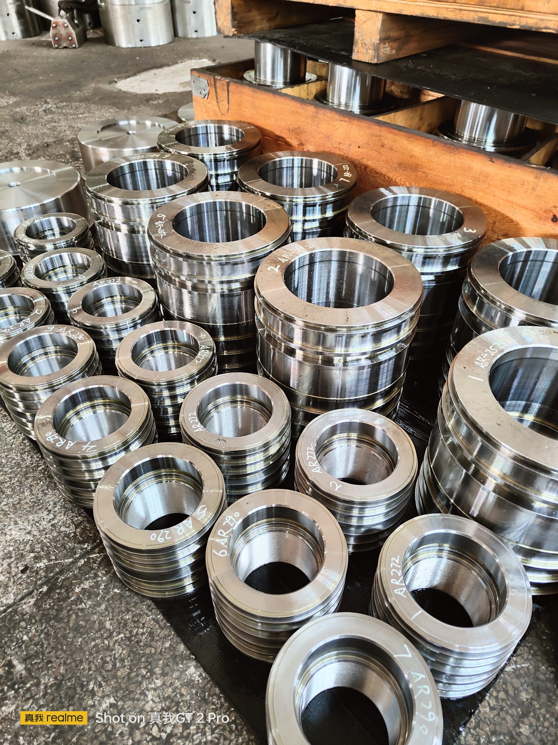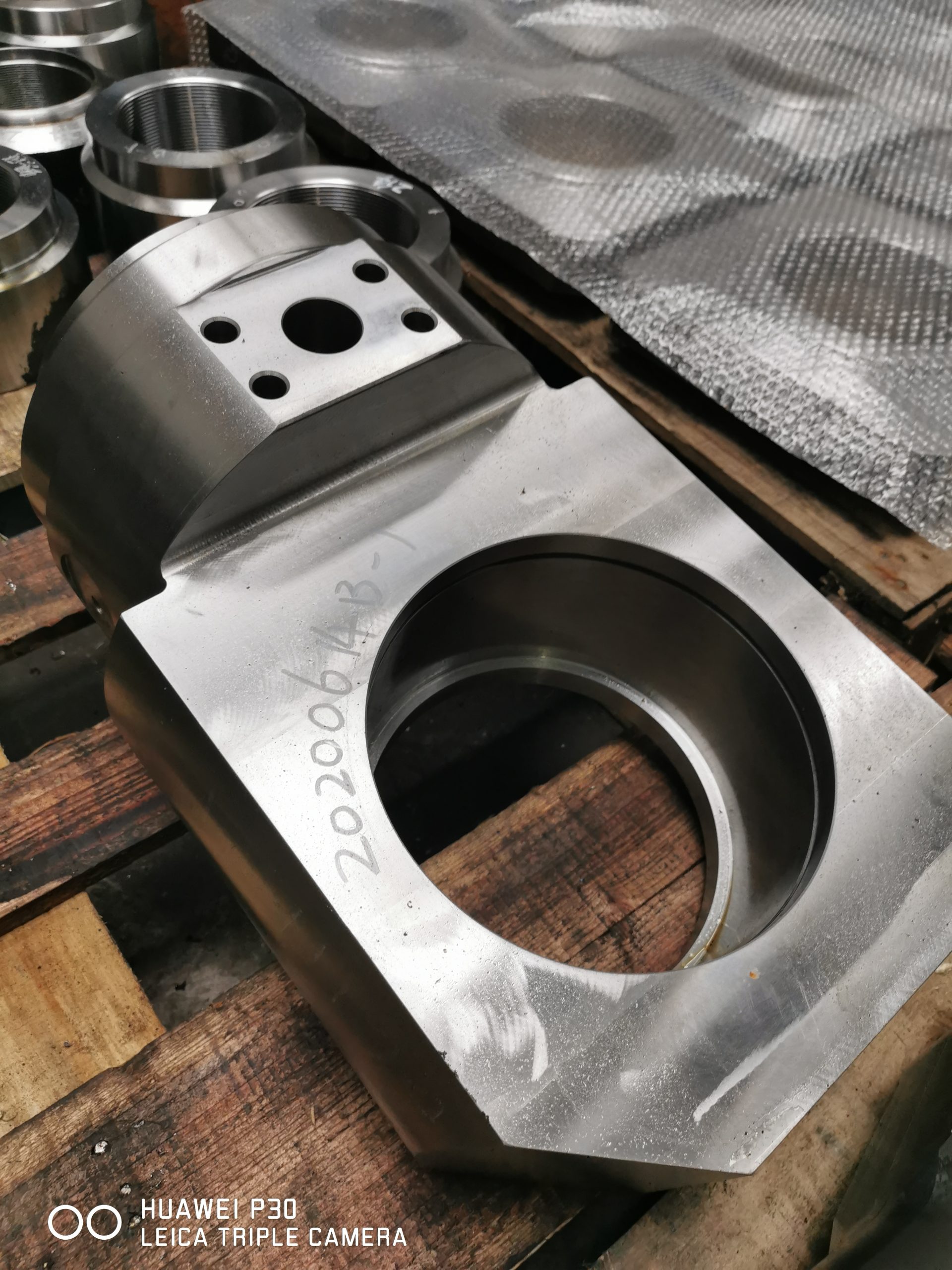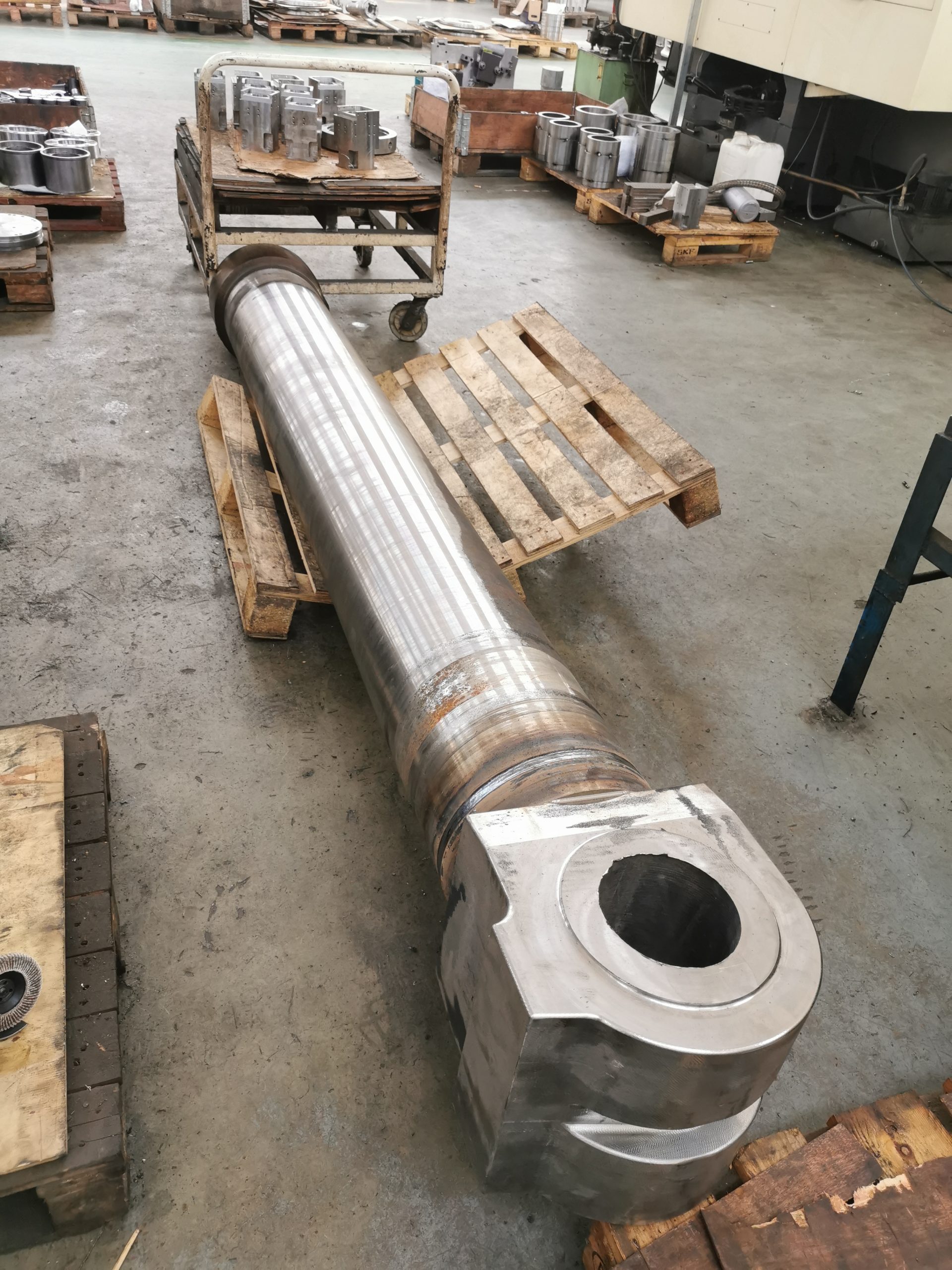 High quality seemless cold drawn honed steel ST52, 1020, 1045, 27SiMn etc with H8, H9 tolerance. Forged 1 pc or welded piston rod of induction hardened chrome-plated 4340, 4140, 1045, 42CrMo4 with optional nickel plated. Forged piston, gland, sleeve, end cap, barrel eye, rod eye of 4140, 1045, 42CrMo4 with high precision CNC machine. Bushing and spherical plain bearing 100Cr6, SUJ2, 52100, bronze C95500, C86300, CuZn25Al5 etc.